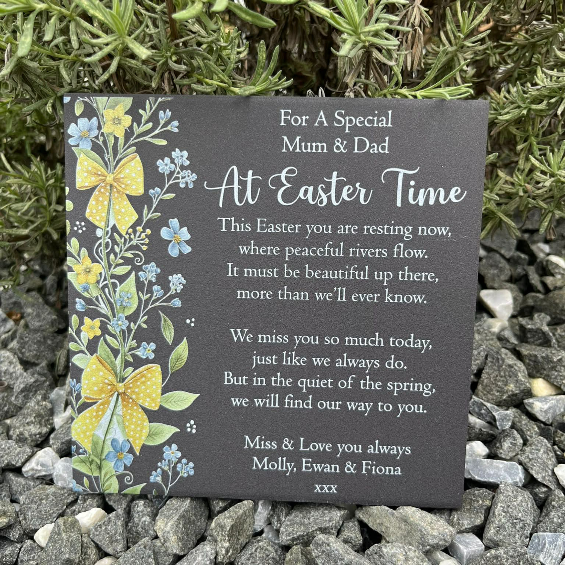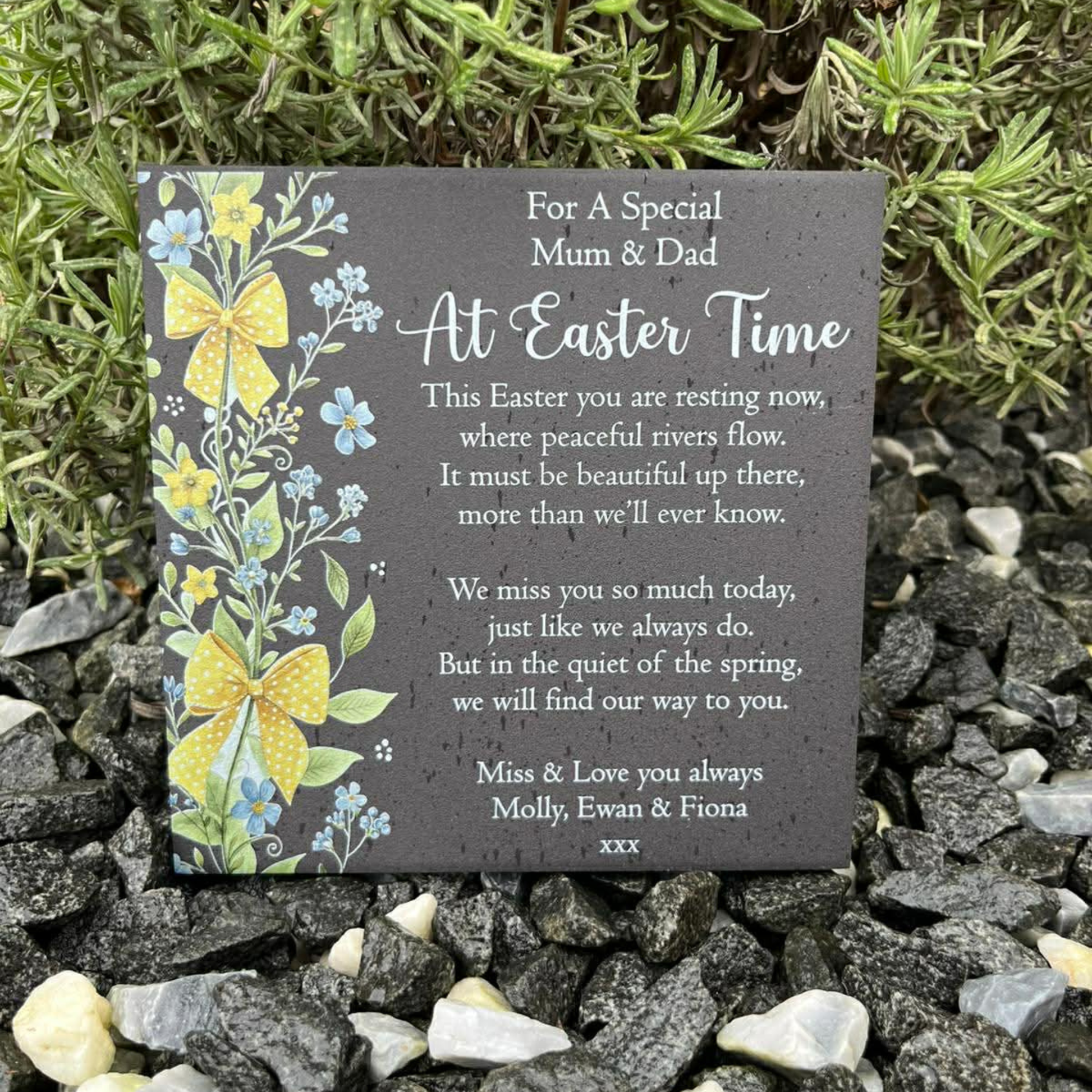 This beautiful Easter memorial is a gentle and meaningful way to remember a loved one during the Easter season. A time of renewal, hope and reflection. Easter can bring both comfort and longing.